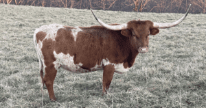Fire Stick Texas Longhorn Cow Color: Red w/ spots and speckles Date Calved: 04/17/2015 Sire: Top Fire Dam: Cinnamon Stick Branded ID# : 15/161 T2T: